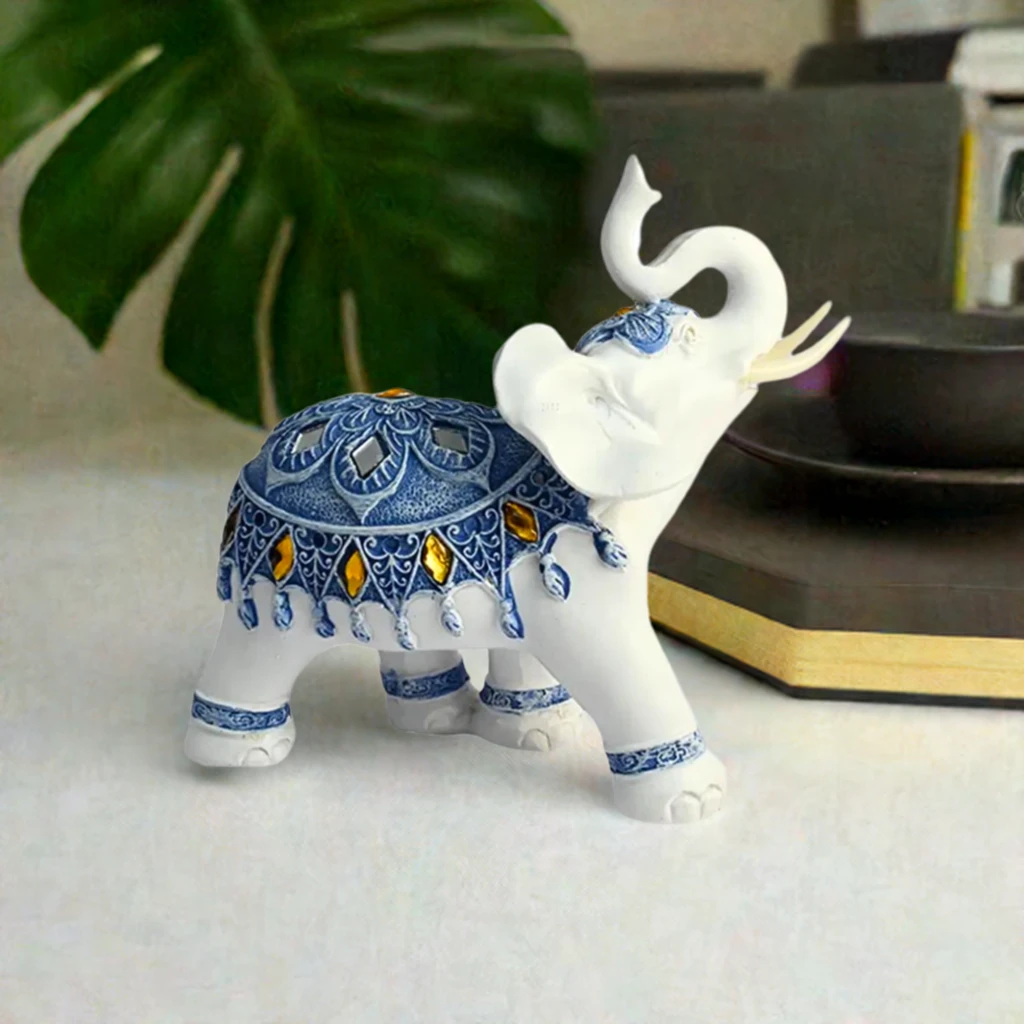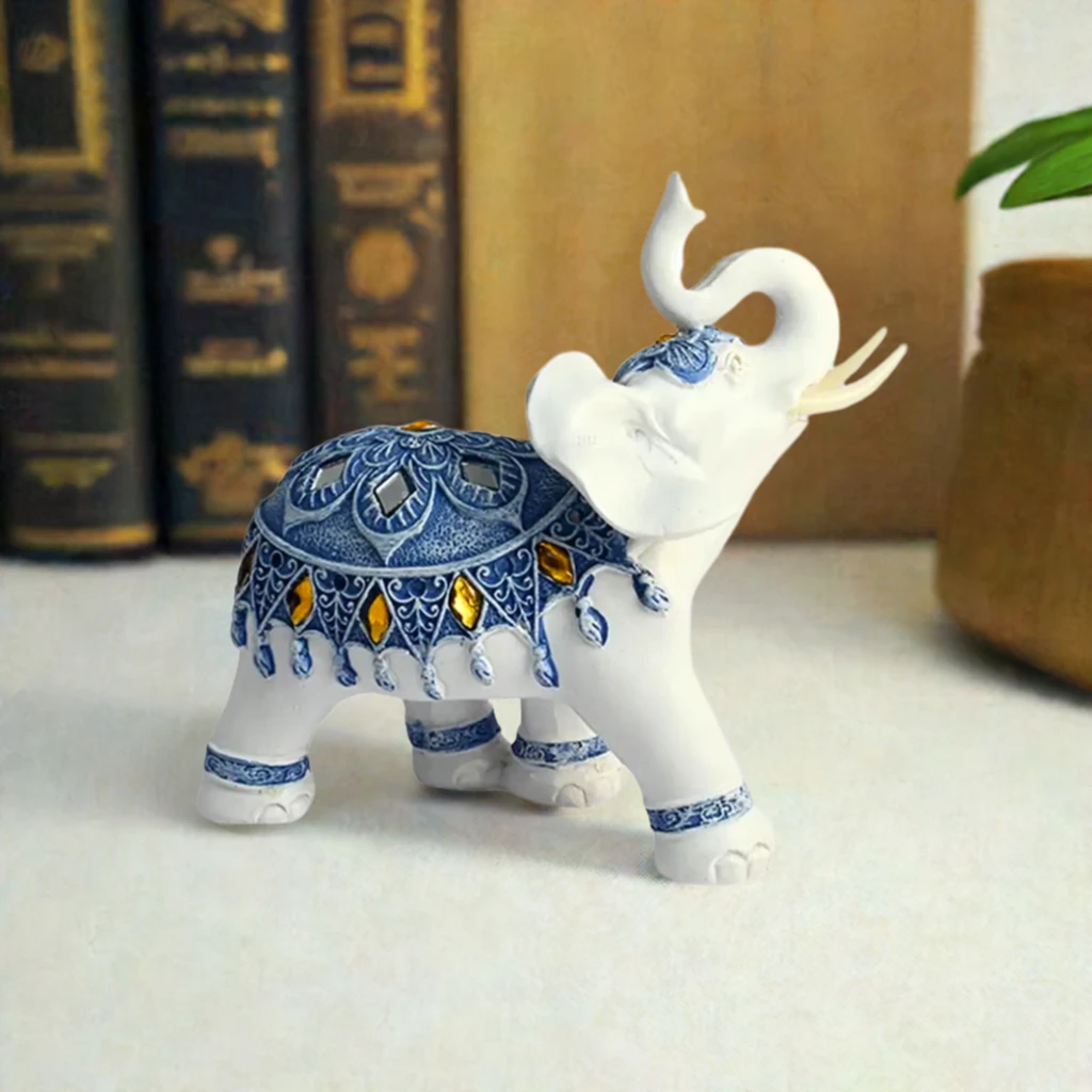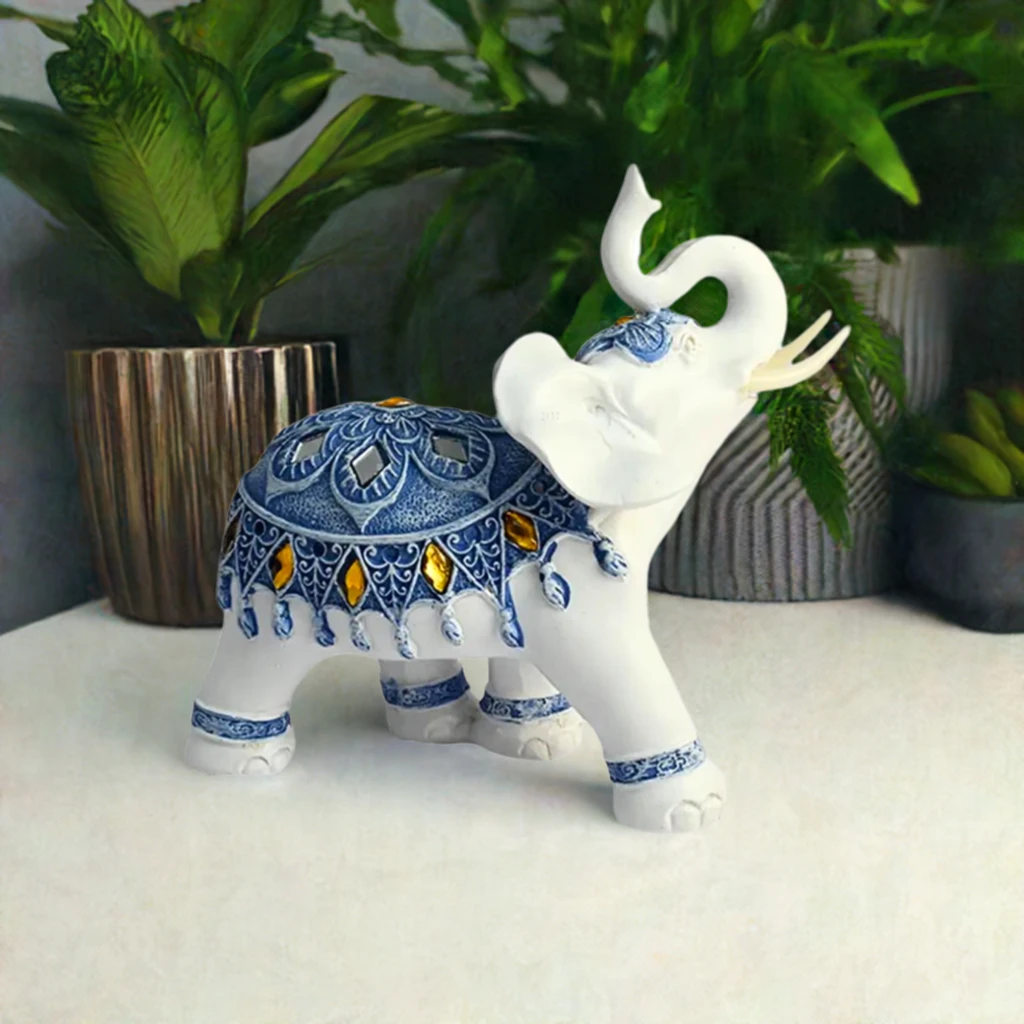Made from high-quality materials, this elephant figurine is designed to capture attention and elevate the ambiance of any room. Whether placed on a shelf, mantel, or side table, it adds a luxurious touch to any decor style, be it traditional, modern, or eclectic.