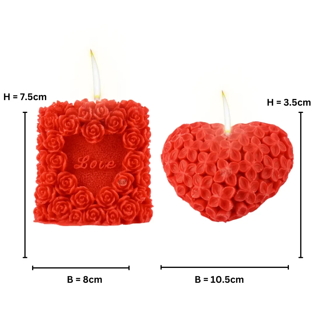 Product included: 1 Piece of 3D Red Rose Heart & 1 Piece of Heart Shaped Red Flowers Wax Candle