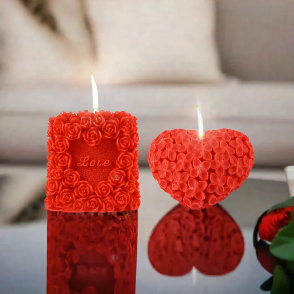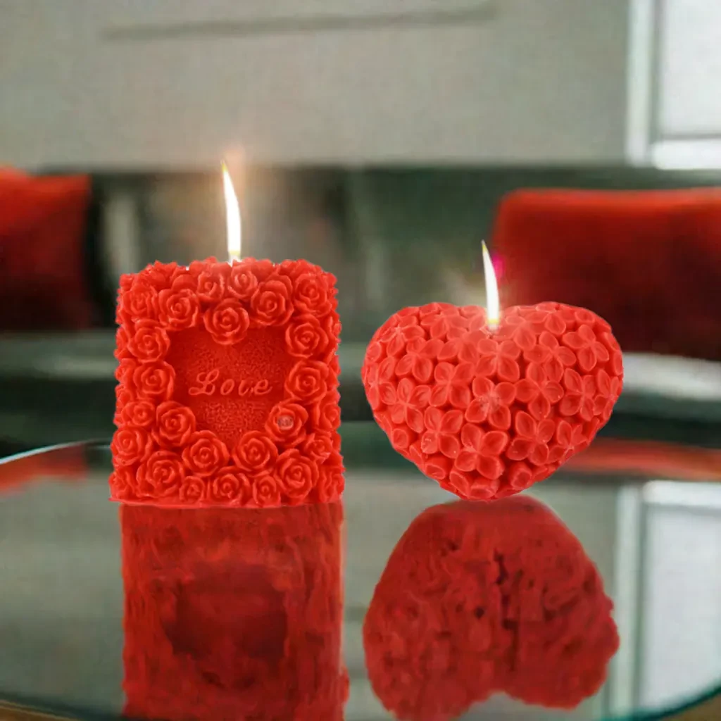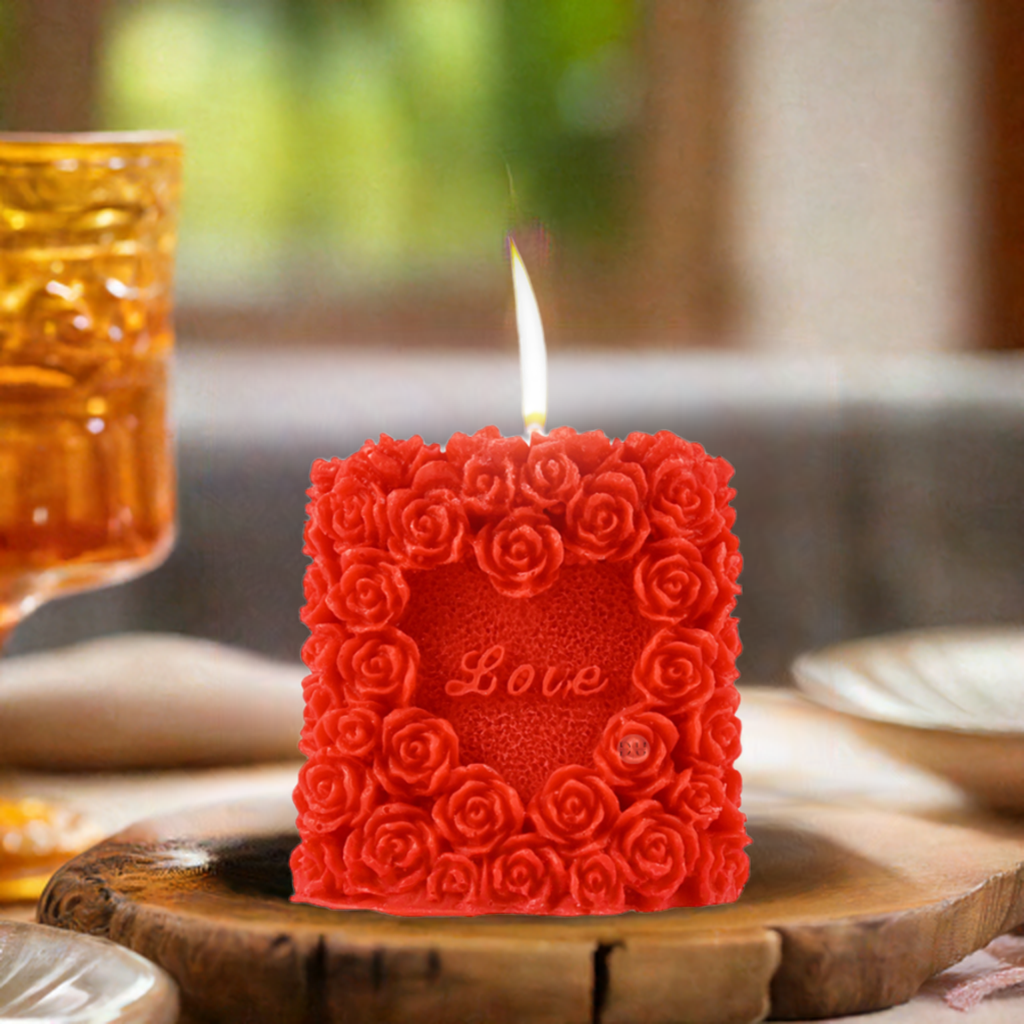 Brighten up any space with our 3D Red Rose Heart & Heart Shaped Red Flowers Wax Candle—perfect for creating a warm, romantic atmosphere. These candles are crafted from high-quality wax, ensuring a slow and even burn, making them ideal for cozy nights or special celebrations. The charming heart shape adds a touch of love to any setting, making it a popular choice for Valentine’s Day or anniversary gifts. Whether you’re setting up a dinner date or looking for a thoughtful gift, this heart shape candle is sure to make the moment memorable. Add this beautiful wax candle to your décor for a delightful glow that warms the heart. For safety, always ensure the candle is never left unattended while burning.