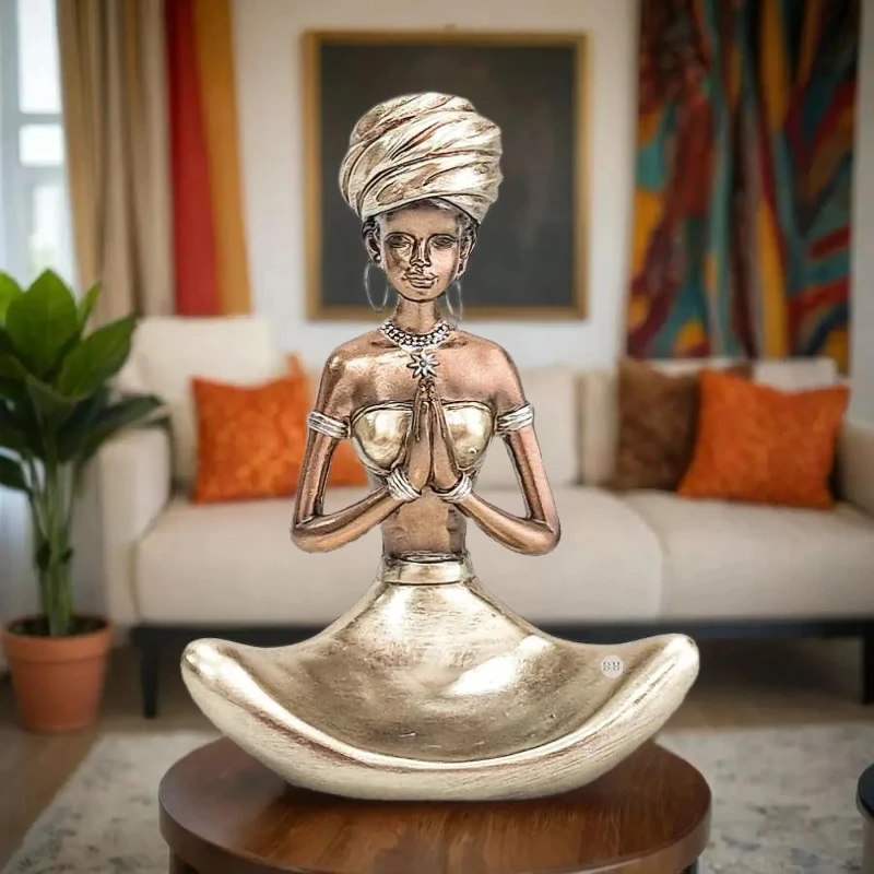 Crafted from high-quality resin, this figurine is both lightweight and durable, designed to stand the test of time. The natural earth-tone colors and traditional African attire highlight the cultural authenticity of the piece, making it a unique accent for any modern or bohemian-inspired decor.