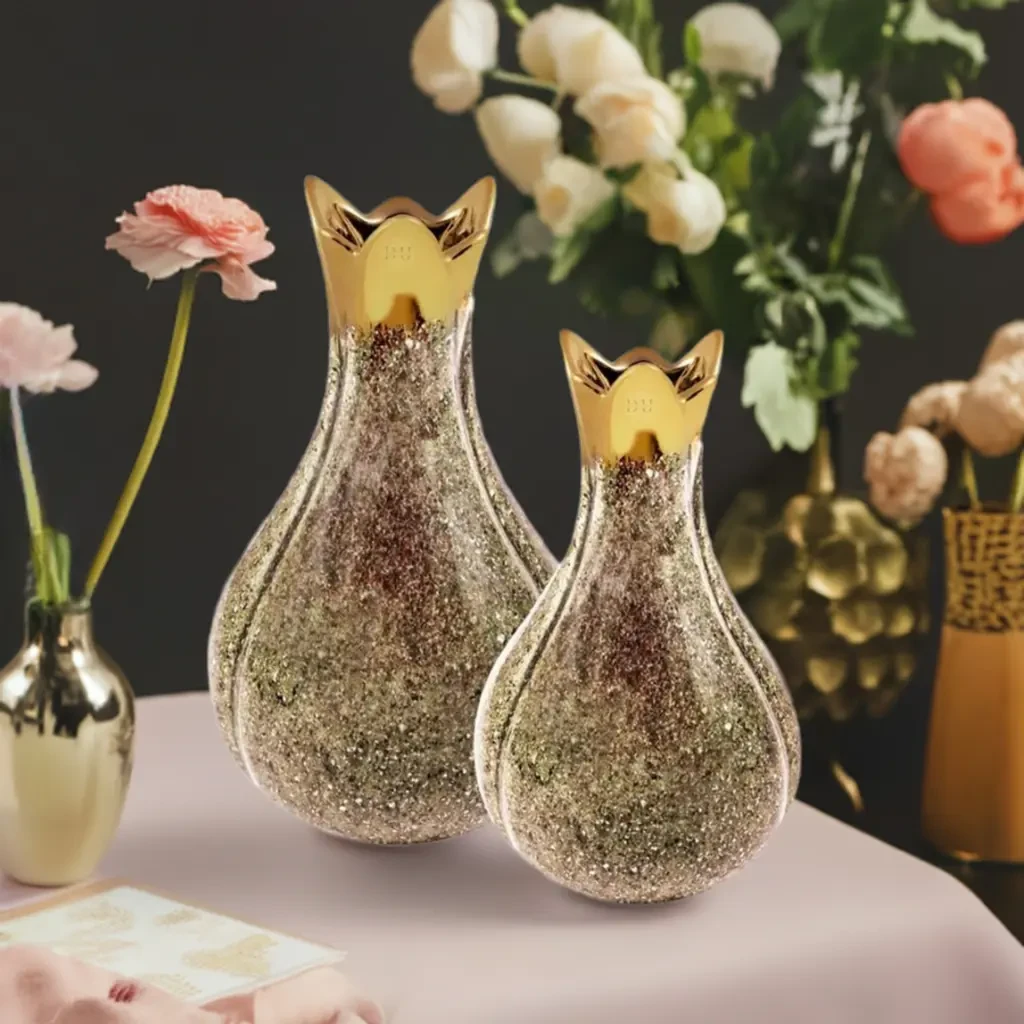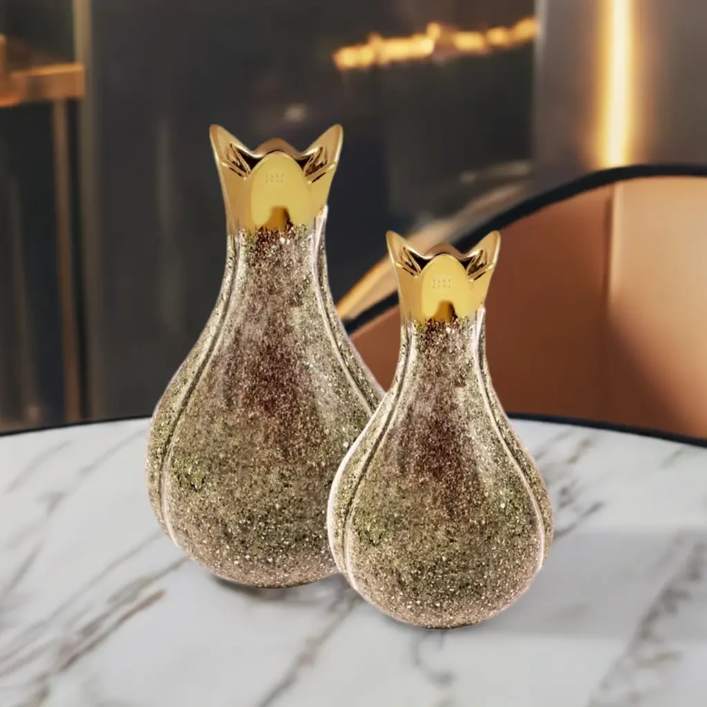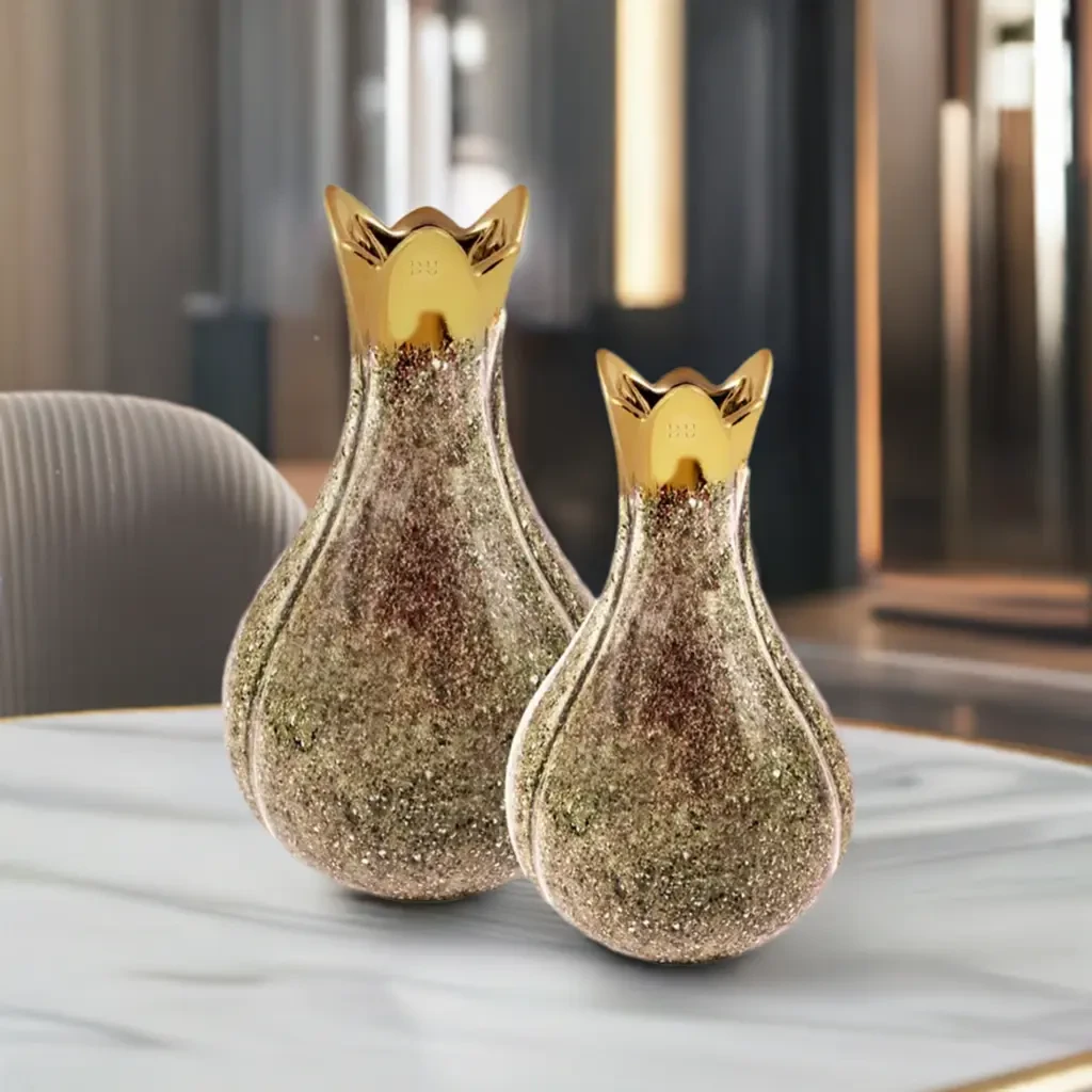 Products Included: 2 Pieces of Golden & Brown Ceramic Vases