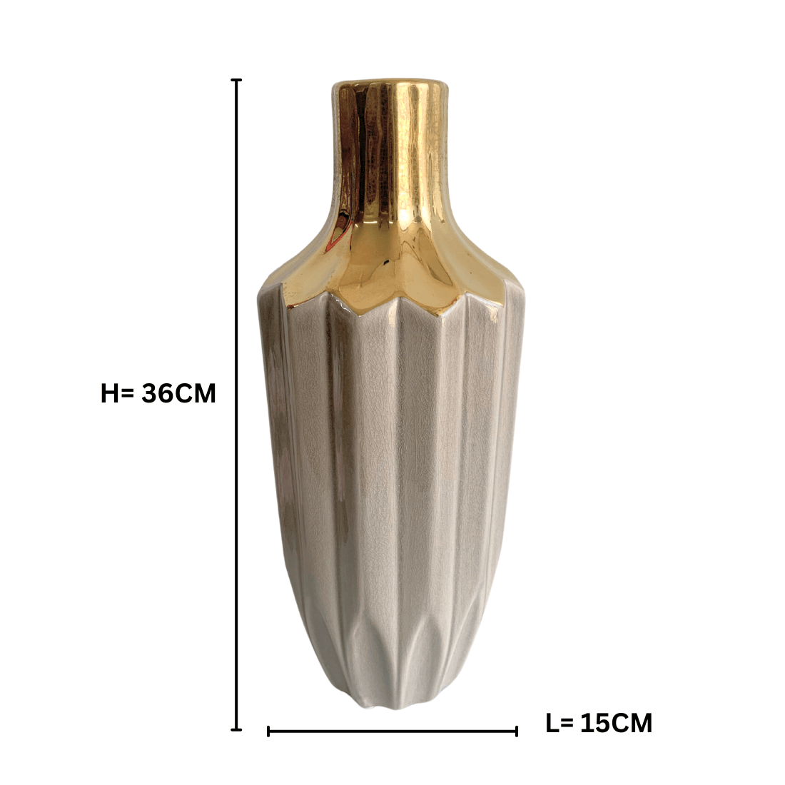 Product Name: Gold And Light Brown Ribbed Flower Ceramic Vase