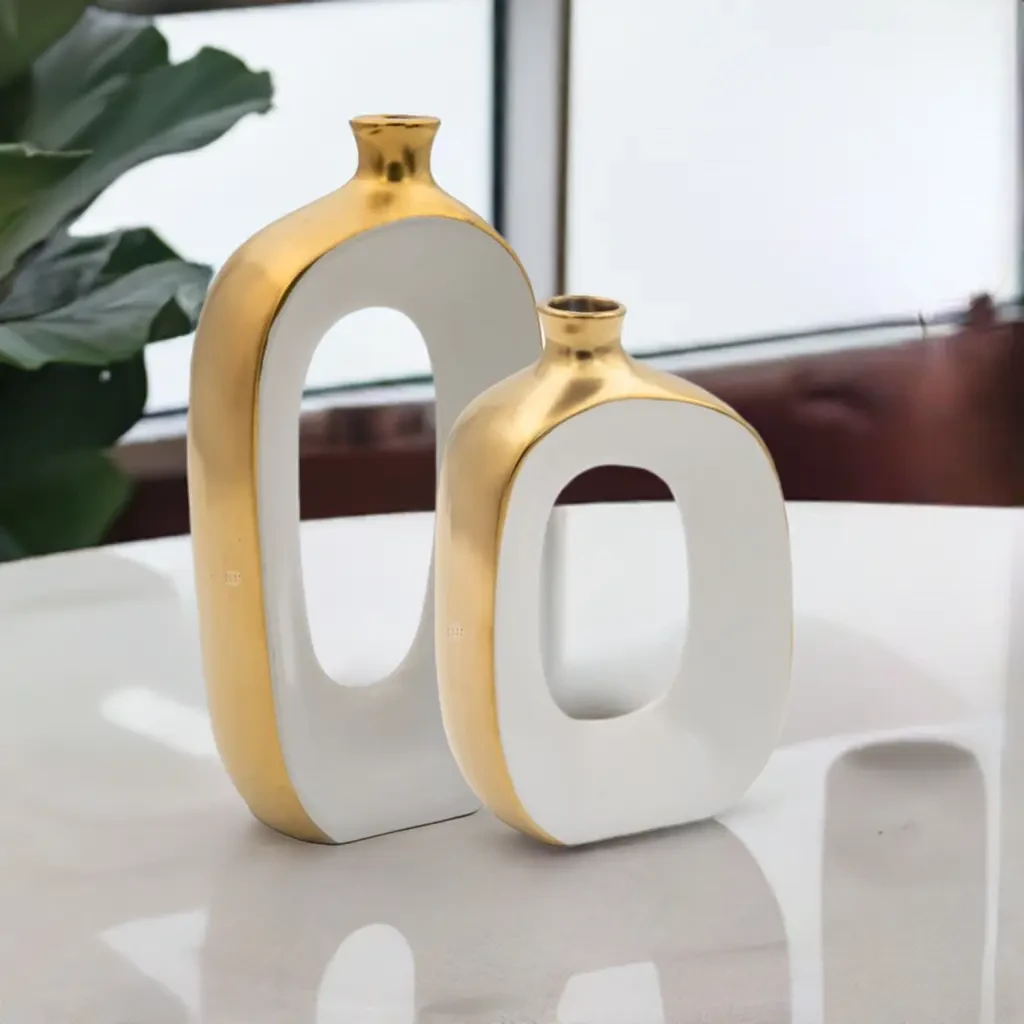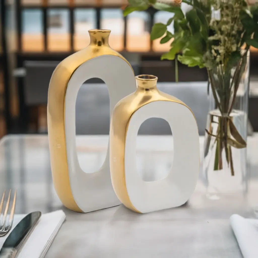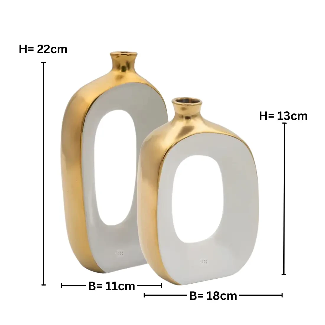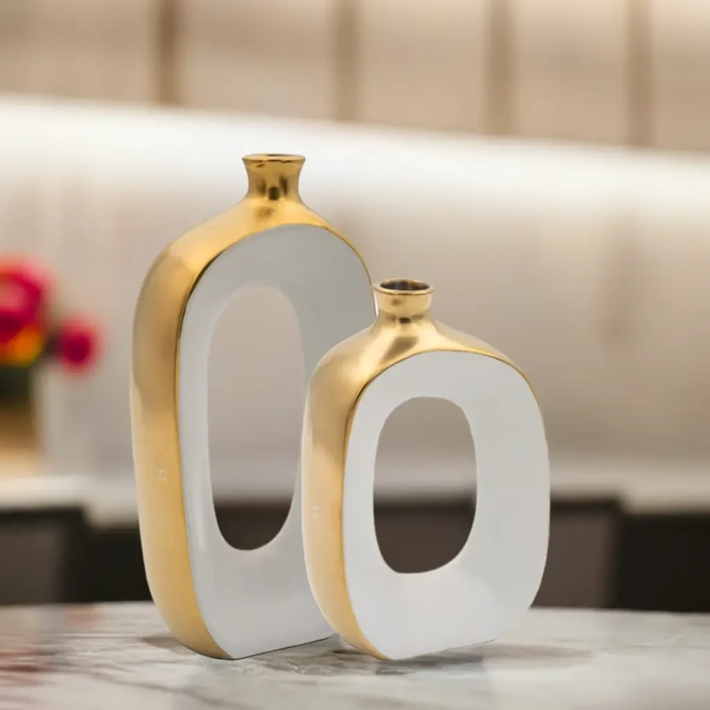 Products Included: 1 Big & Small Piece of Gold & White Colour Set Ceramic Vases