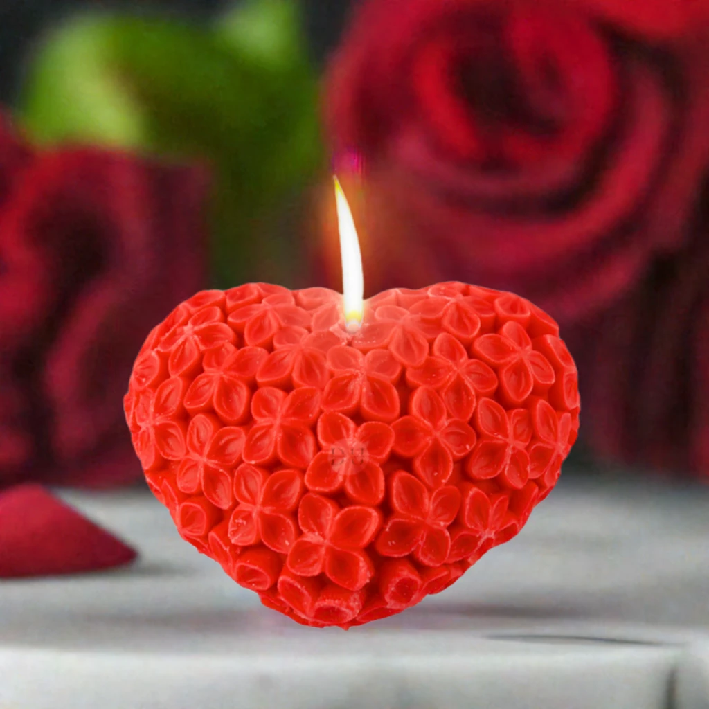 Ignite the romance with our Heart Shaped Red Flowers Wax Candle, designed to add a touch of warmth and elegance to any space. Crafted from high-quality wax, this candle features a stunning heart shape adorned with delicate red flowers, making it the perfect choice for creating a cozy ambiance. Whether you're looking for a thoughtful gift for Valentine's Day, an anniversary, or simply a way to elevate your home décor, these candles are a beautiful addition to any setting. Embrace the soft glow and fragrant atmosphere that this heart shape candle provides, and make every moment special.