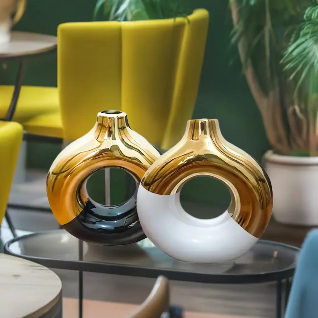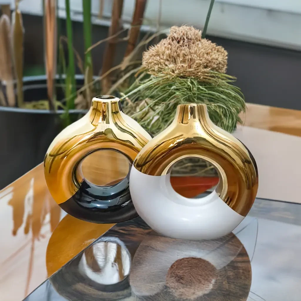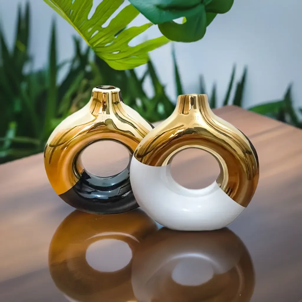 Product Name: Magnificent Golden White & Black Glossy Vases