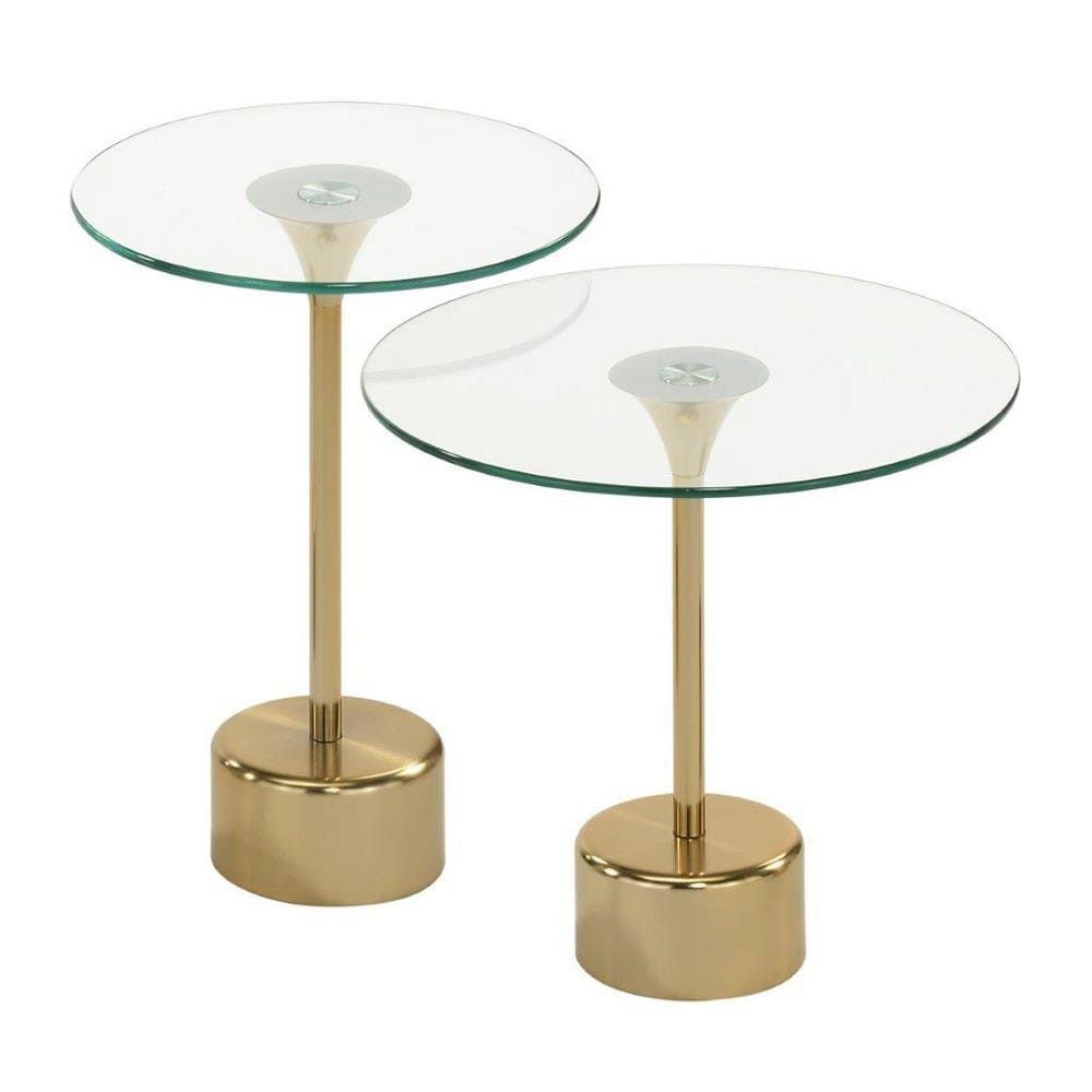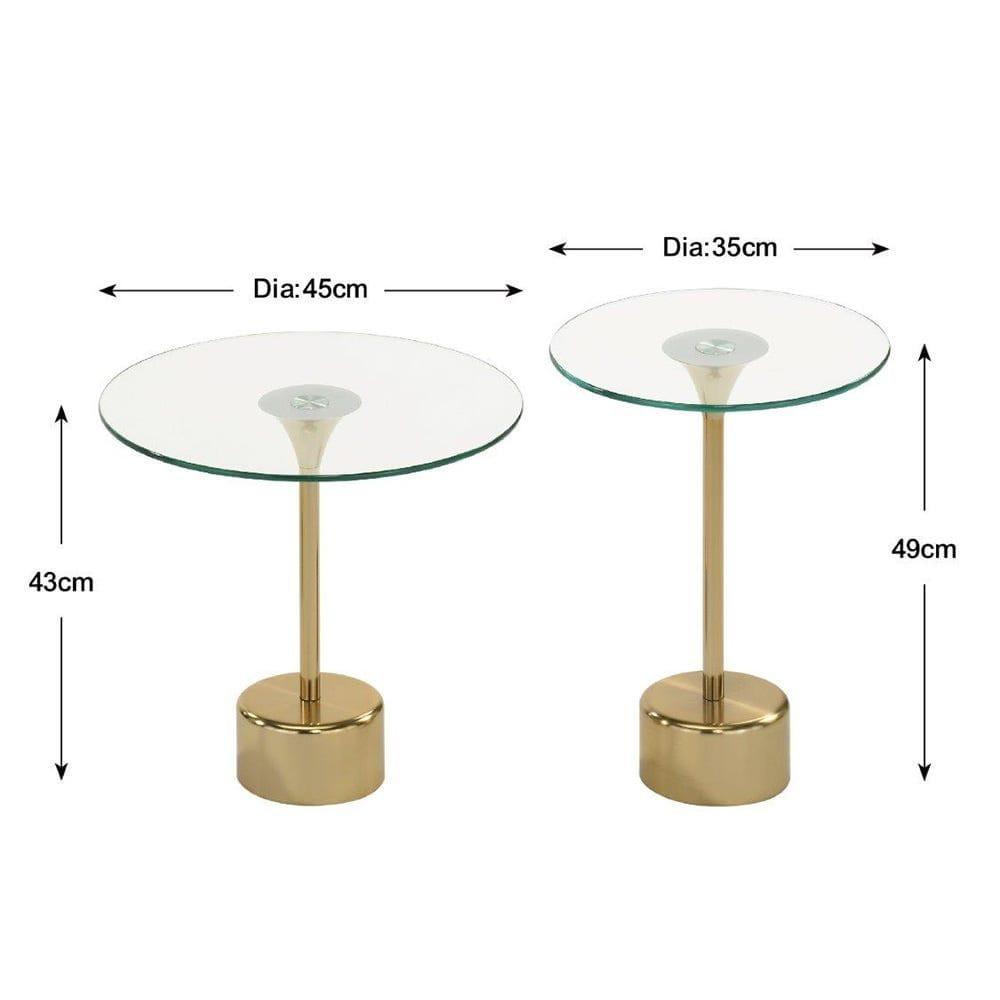 Our end table set includes a robust and easy-to-maintain spherical glass top for displaying your favourite decorations. It features a stunning gold metal frame base, making it an elegant addition to any interior design.