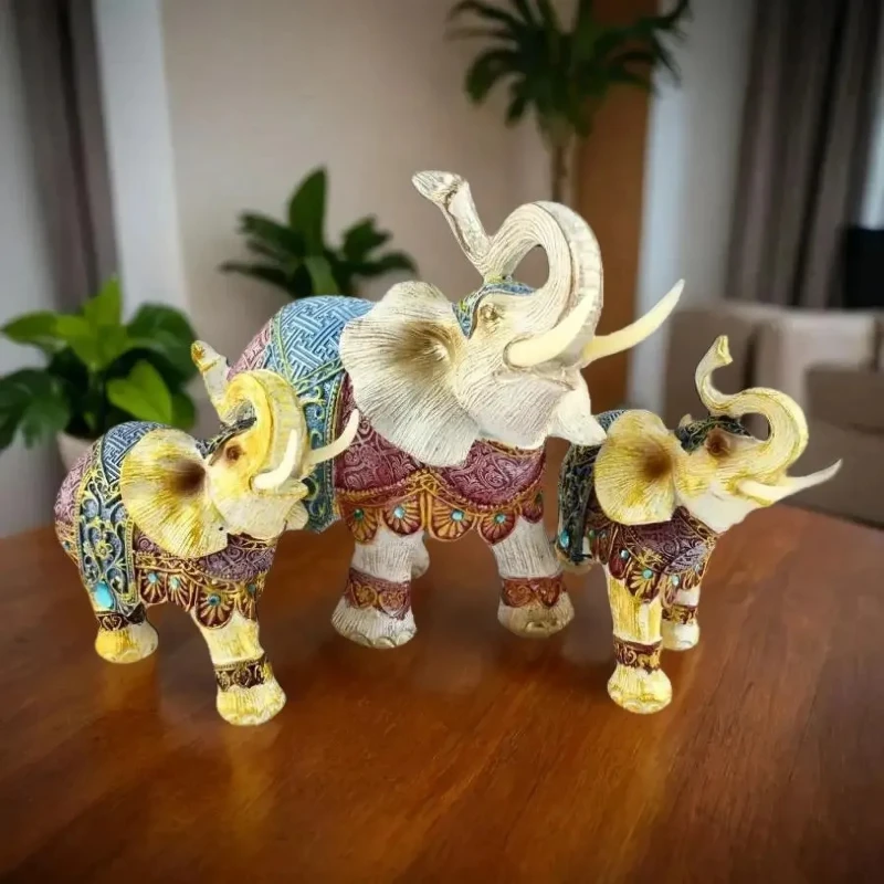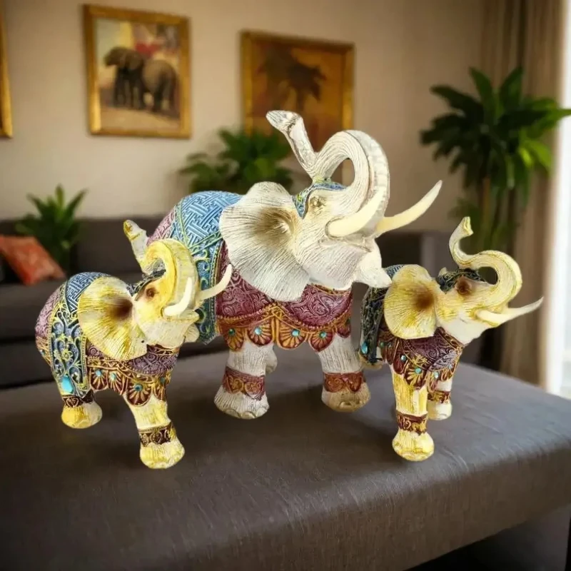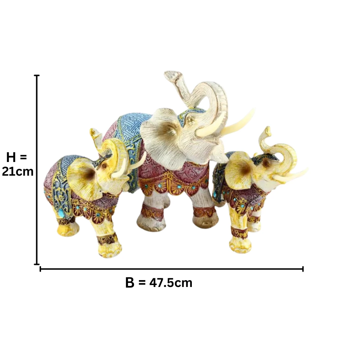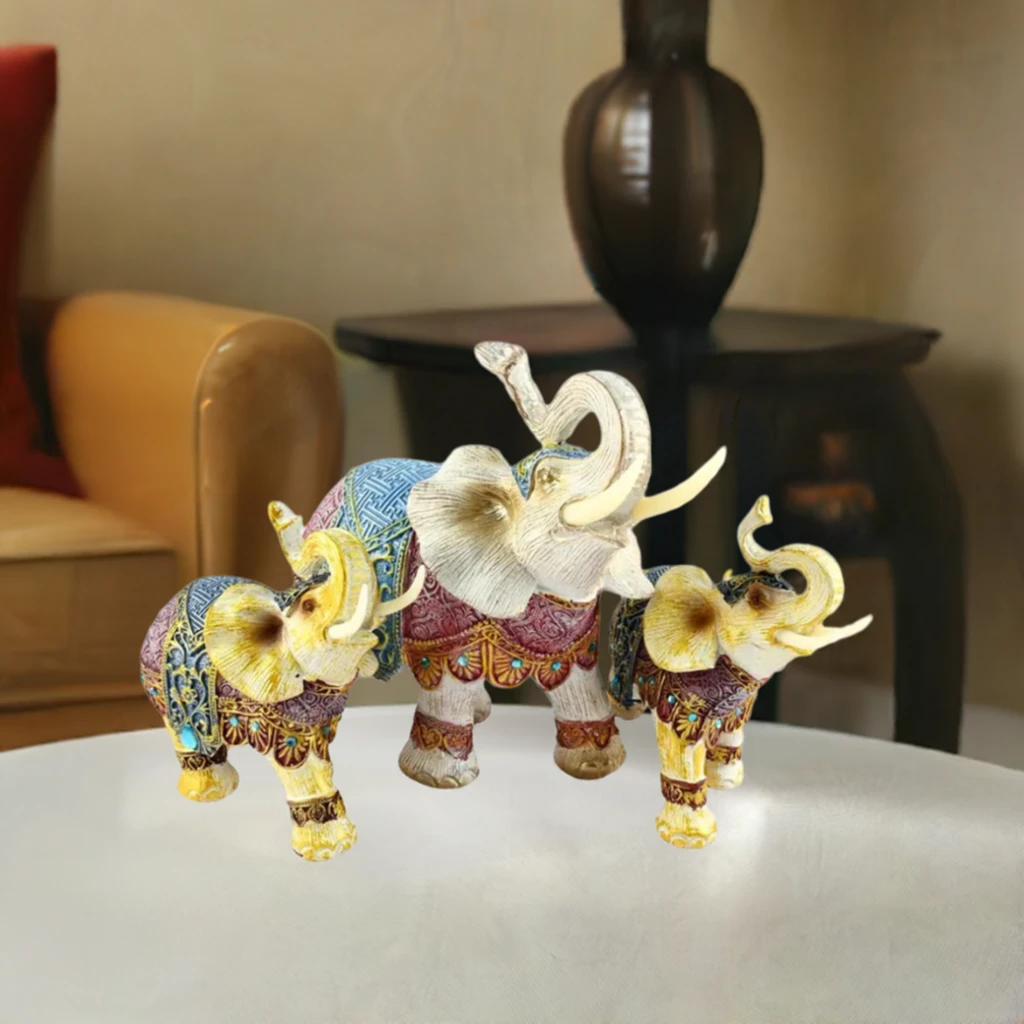 These majestic elephants are hand-painted with vibrant colors, exuding a rich, royal appearance that resonates with the traditional heritage of India. Perfect as a centerpiece or as part of a larger décor collection, it instantly adds sophistication and cultural charm to your home.