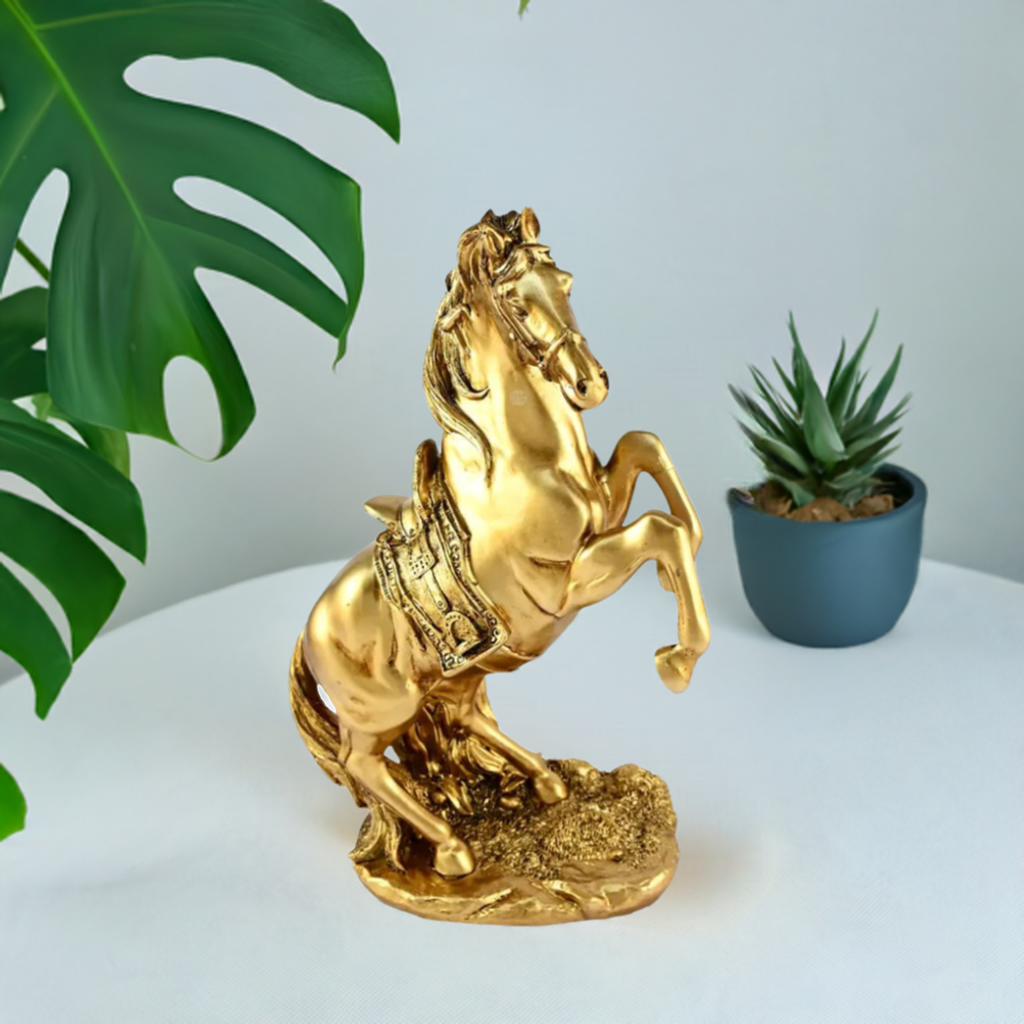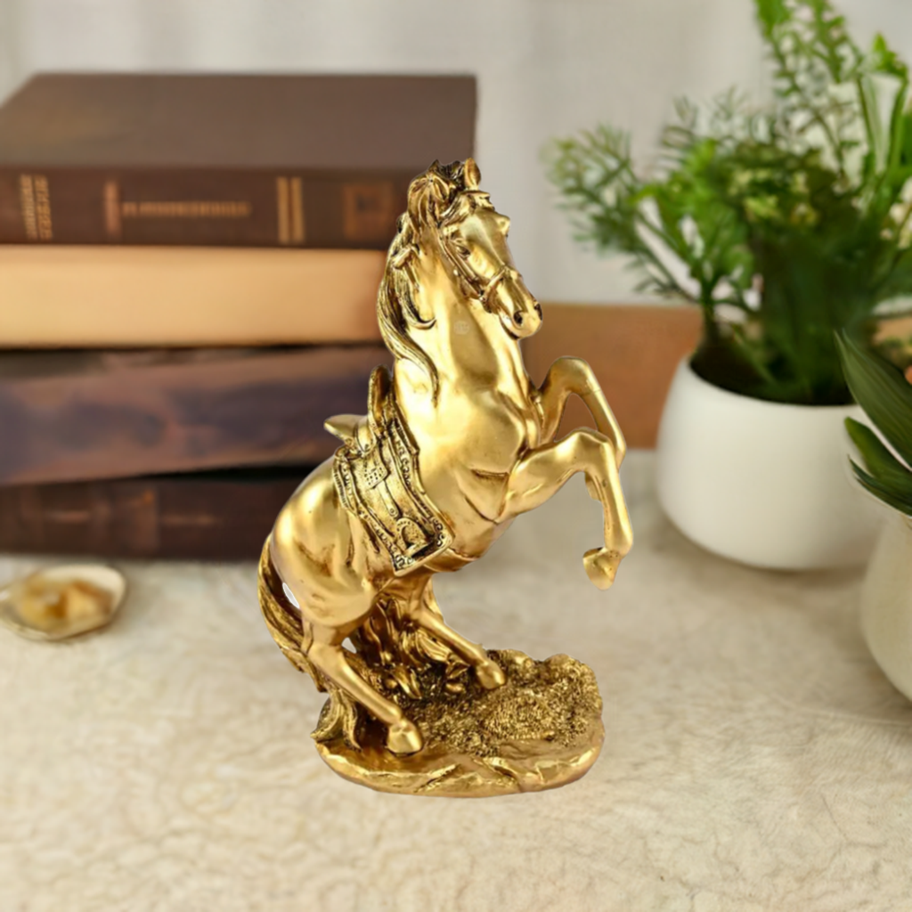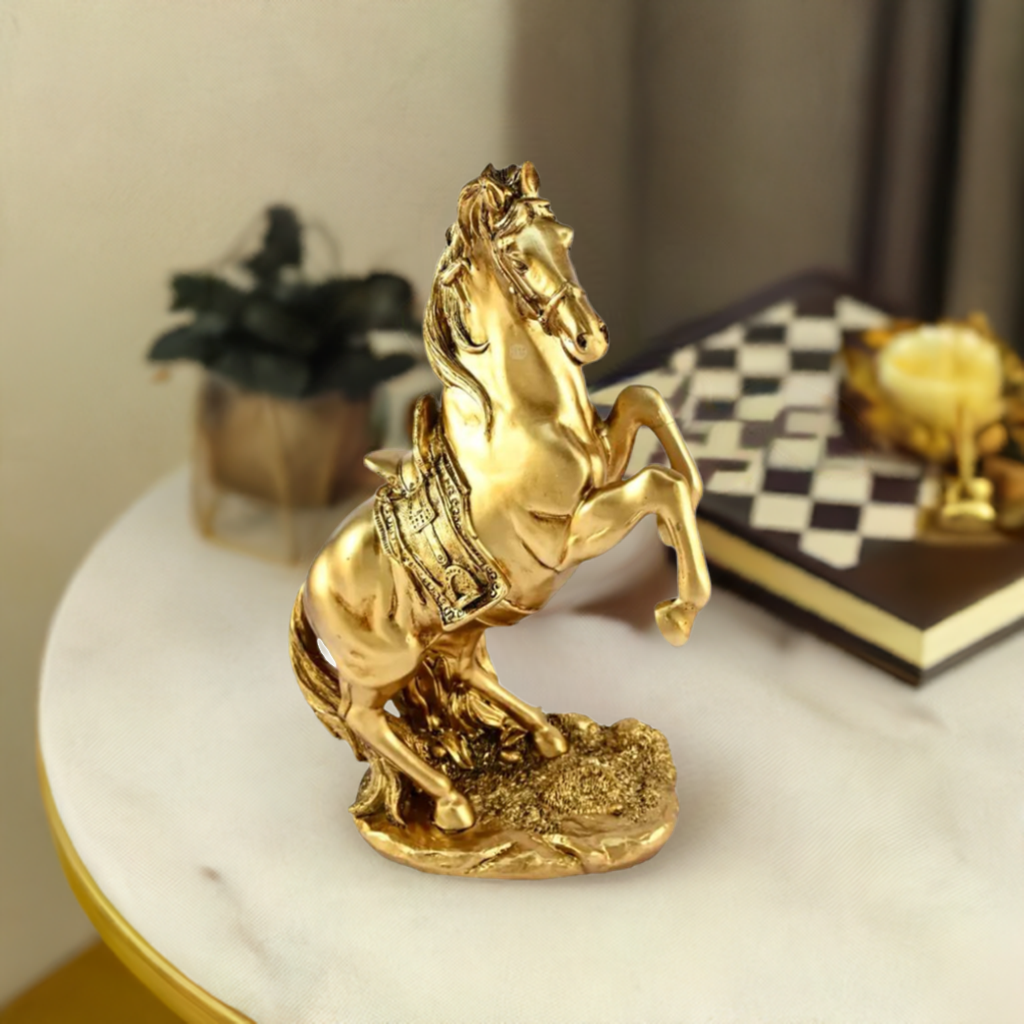 Elevate your home décor with The Royal Horse Figurine, a stunning symbol of grace and power. Crafted from high-quality polyresin, this meticulously detailed figurine captures the regal essence of a horse in mid-stride, exuding strength and elegance. The smooth, gold-toned finish adds a luxurious touch, making it an ideal centerpiece for your living room, office, or study.